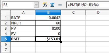 So, after applying the above formula, the monthly payment is $153.01