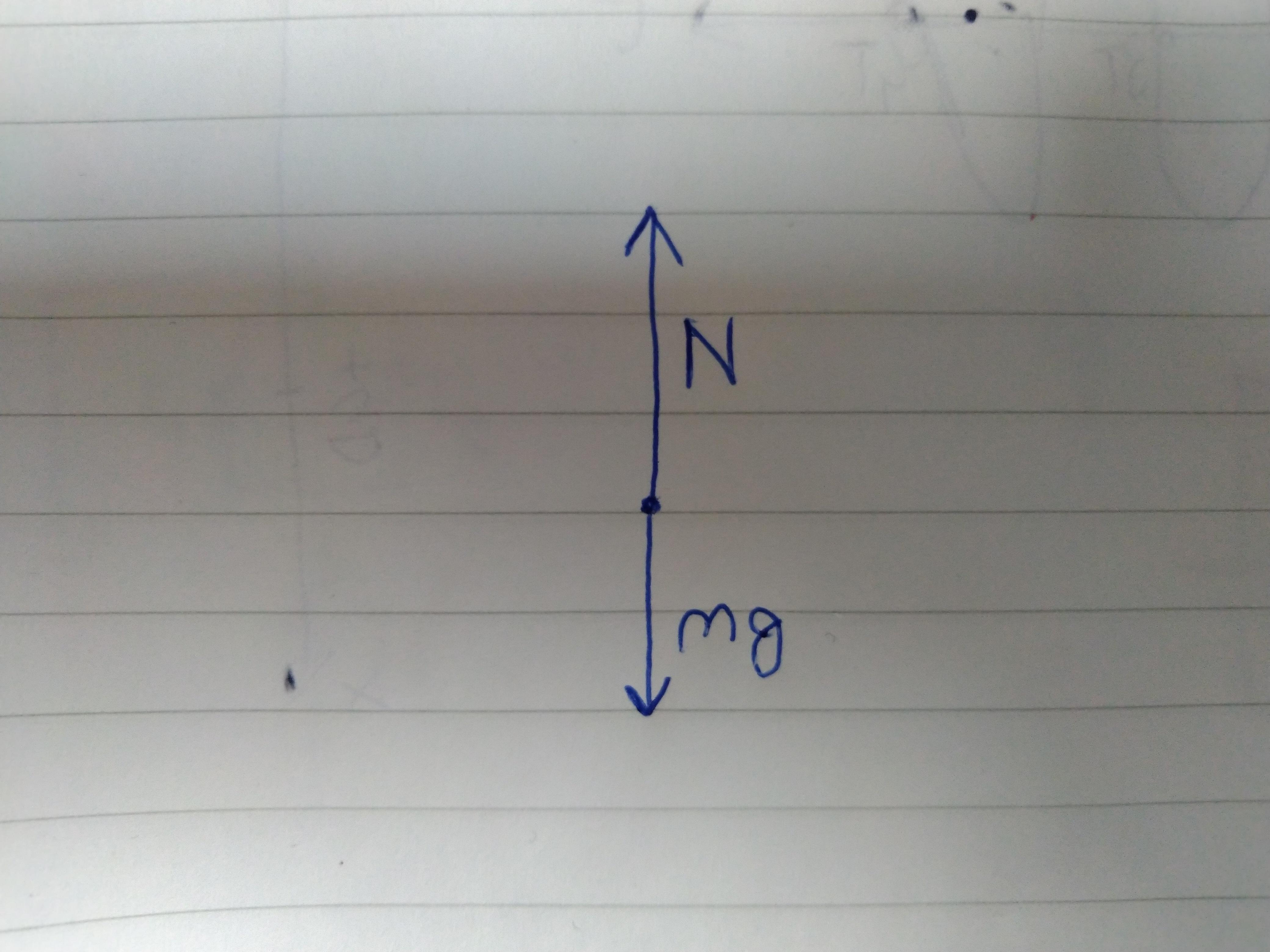 - The normal force of the bench, N, upward