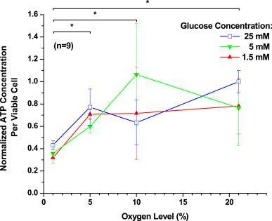 Glucose fuels the respiration process, and is broken down over a series of steps in glycolysis, the Kreb's cycle, and oxidative phosphorylation. With higher concentrations of glucose in the culture media, the rate of aerobic respiration increases as more glucose is processed. However, the breakdown of glucose shows higher efficiency (Table 1) in the presence of higher concentration of Oxygen.