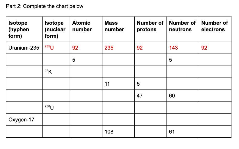 Isotope           Nuclear form         1       2       3        4      5