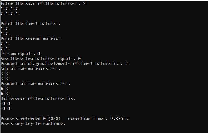 cout << "Difference of two matrices is: " << endl;