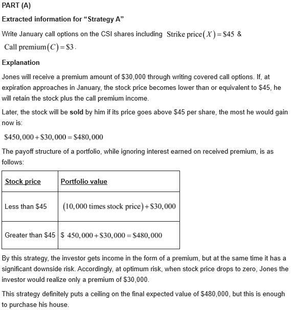 a. Strategy A is to write January call options on the CSI shares with strike price $45. These calls are currently selling for $3 each.