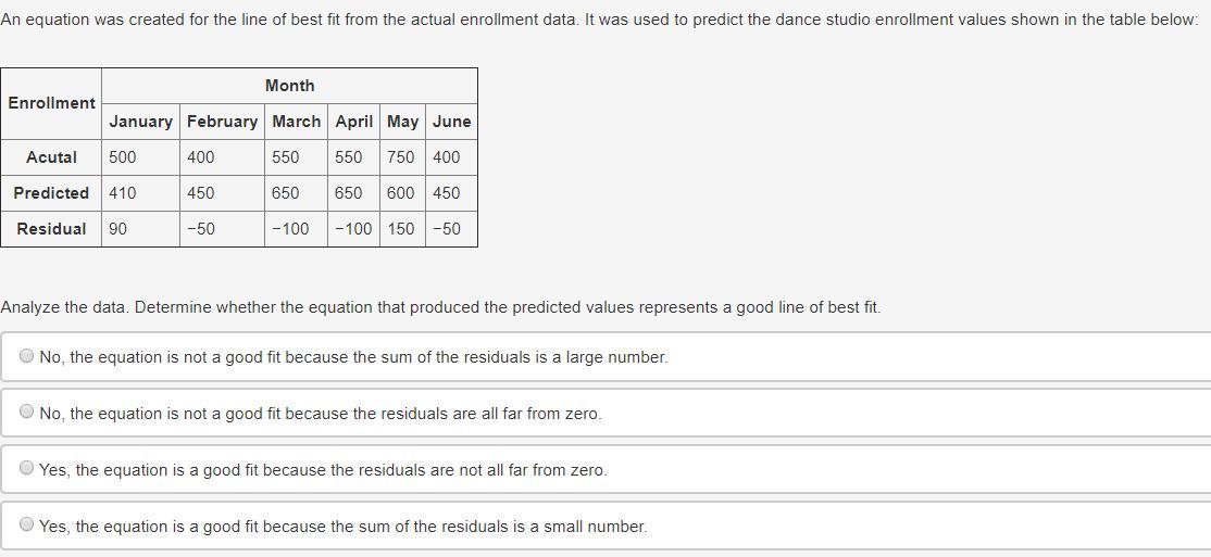 Analyze the data. Determine whether the equation that produced the predicted values represents a good line of best fit.