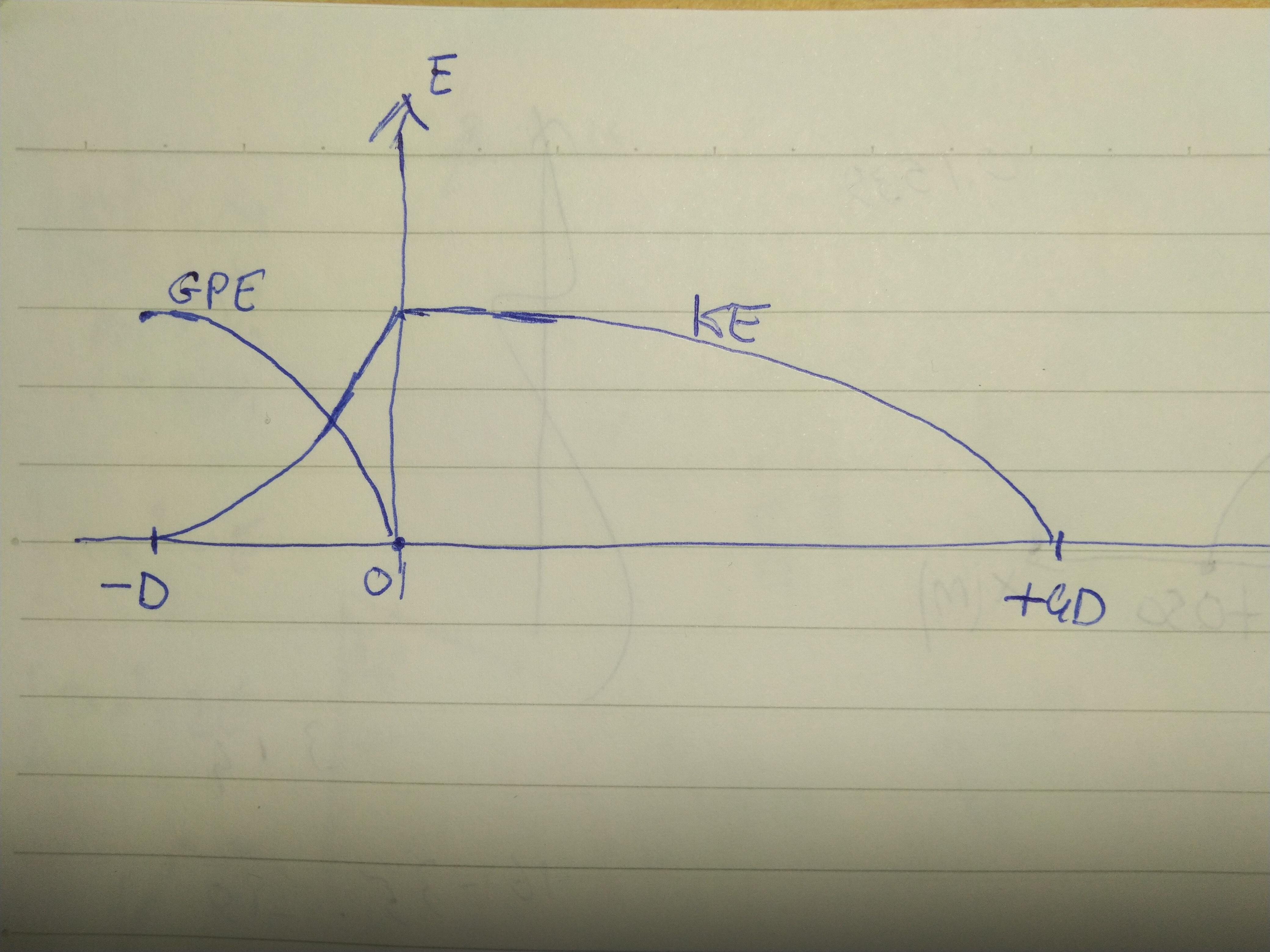 Find in attachment the graph showing the kinetic energy and the potential energy versus the position, x.