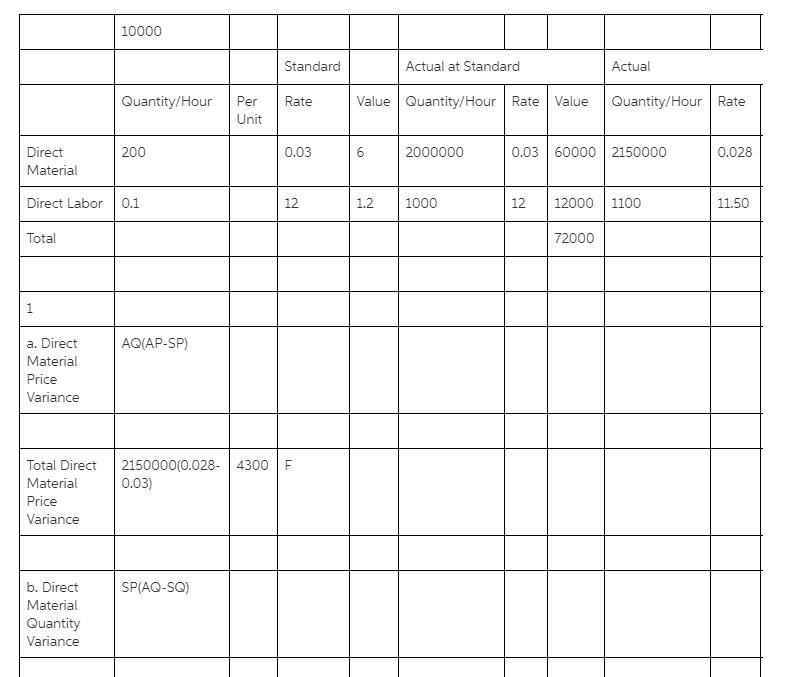 Direct Labor 0.1  12 1.2 1000 12 12000 1100 11.50 12650