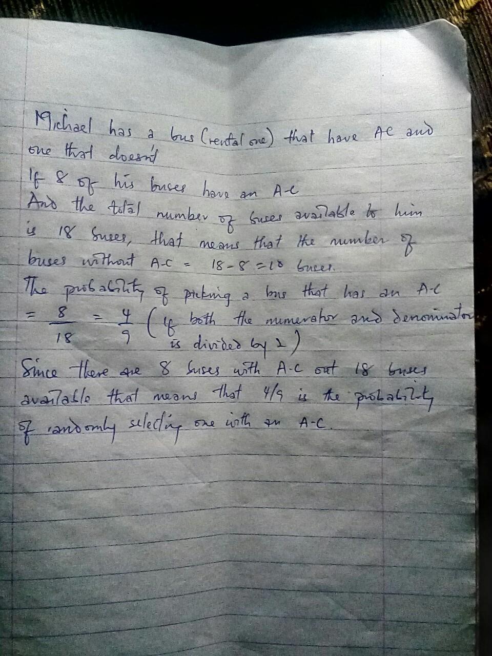 - Out all the available buses he has r = 8 buses with AC in them.