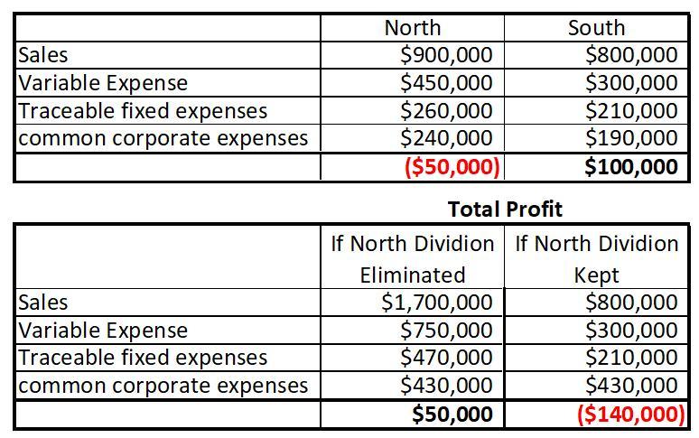 After eliminating the North division the overall profit  will be converted into the loss of $140,000, because the common corporate expenses were shared by the both divisions, eliminating one cause the whole expense to be allocated to a single division.