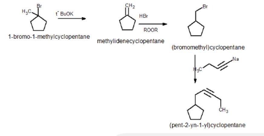 Option 1 => 1) HBr, ROOR; 2) t-BuOK; 3) CH3CH2CCNa