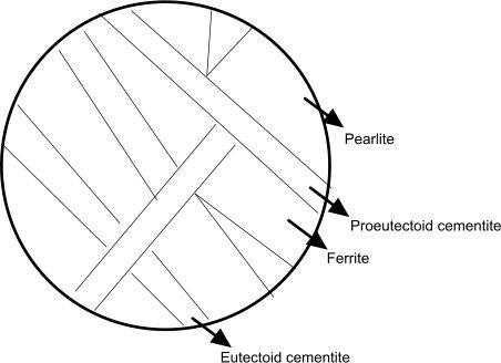 d) In the diagram you can see the different compositions (pearlite, proeutectoid cementite, ferrite, eutectoid cementite)