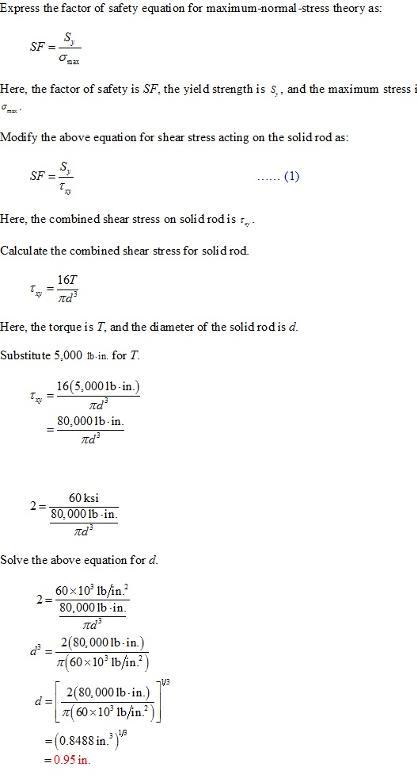 v3 d —[ 2(80,000lb-in.) rz-(60 x103112,An?) = 0.8488 in.3r3 =0.95 in.