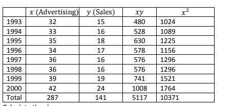 The following data represent a company's yearly sales and its advertising expenditure over a period of 8 years.