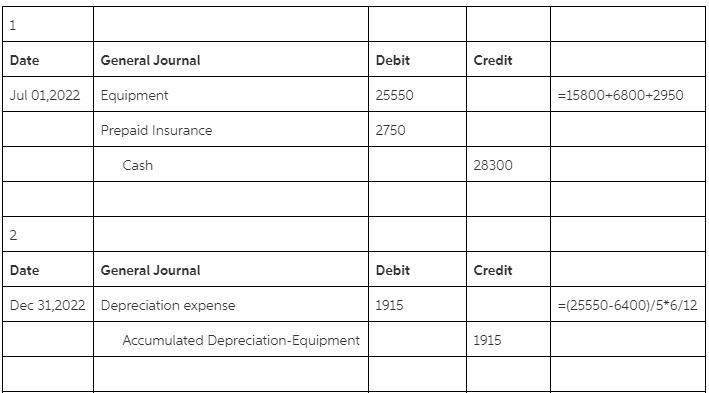 Dec 31,2022 Depreciation expense 1915  =(25550-6400)/5*6/12