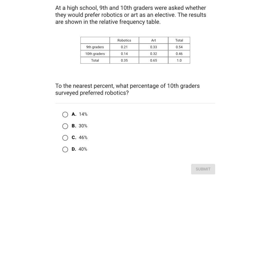 There were 0.1, or 10%, of freshmen in chemistry. There were 0.25, or 25%, of sophomores in chemistry. This is a total of 0.1+0.25 = 0.35, or 35%.