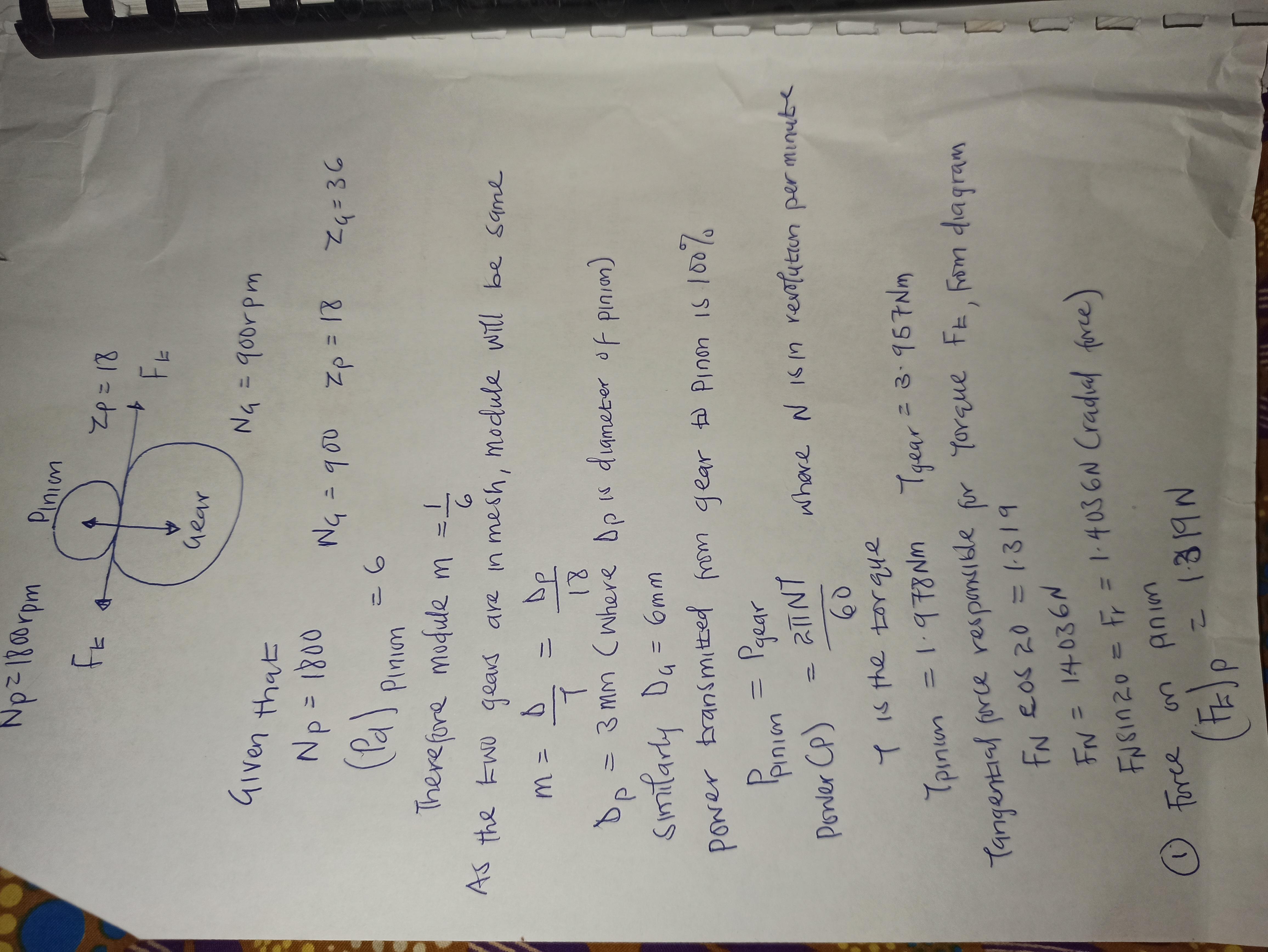 Force on gear = 1.4036N(opposite in direction to force on pinion)