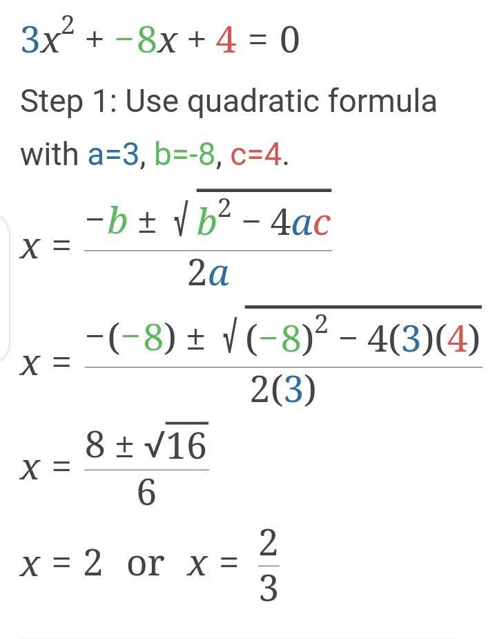 3x² - 8x + 4 = 0
