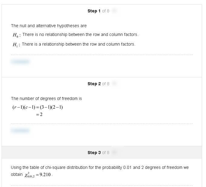 • The table shows data from a survey about the number of times families eat at restaurants during a week. The families are either