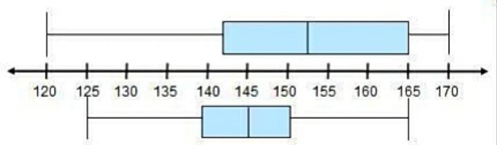 The Inter quartile range = 3rd quartile- 1st quartile = 150 - 139 = 11