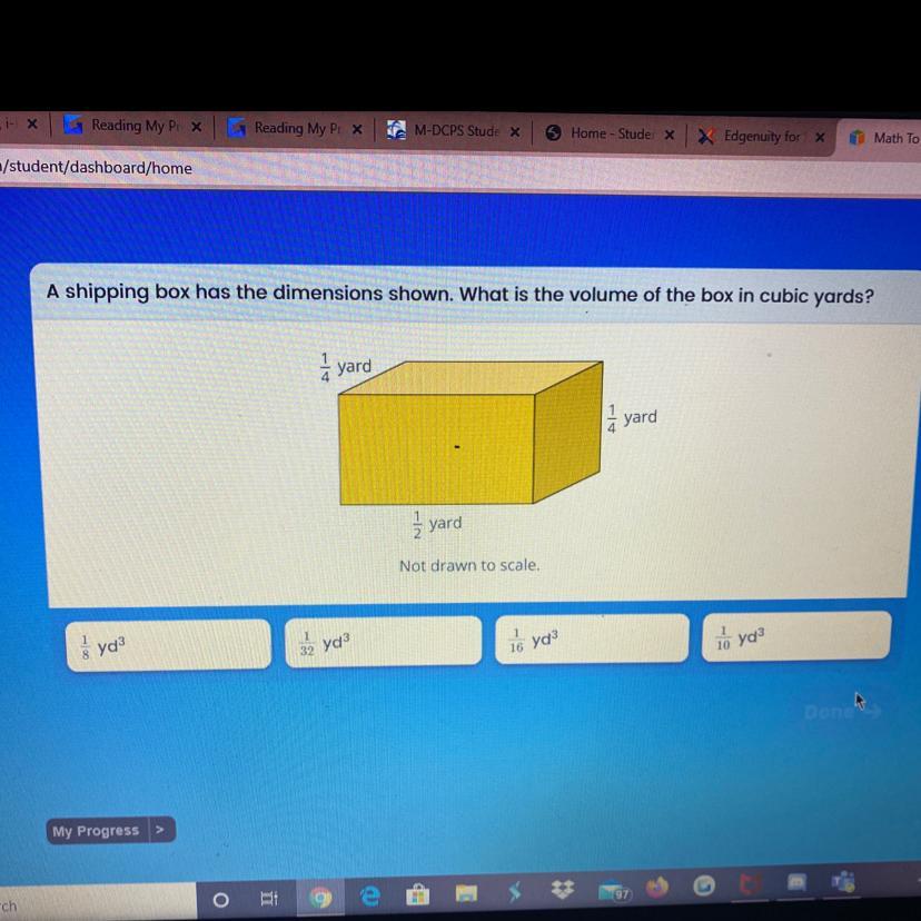A shipping box has the dimensions shown. What is the volume of the box in cubic yards ?