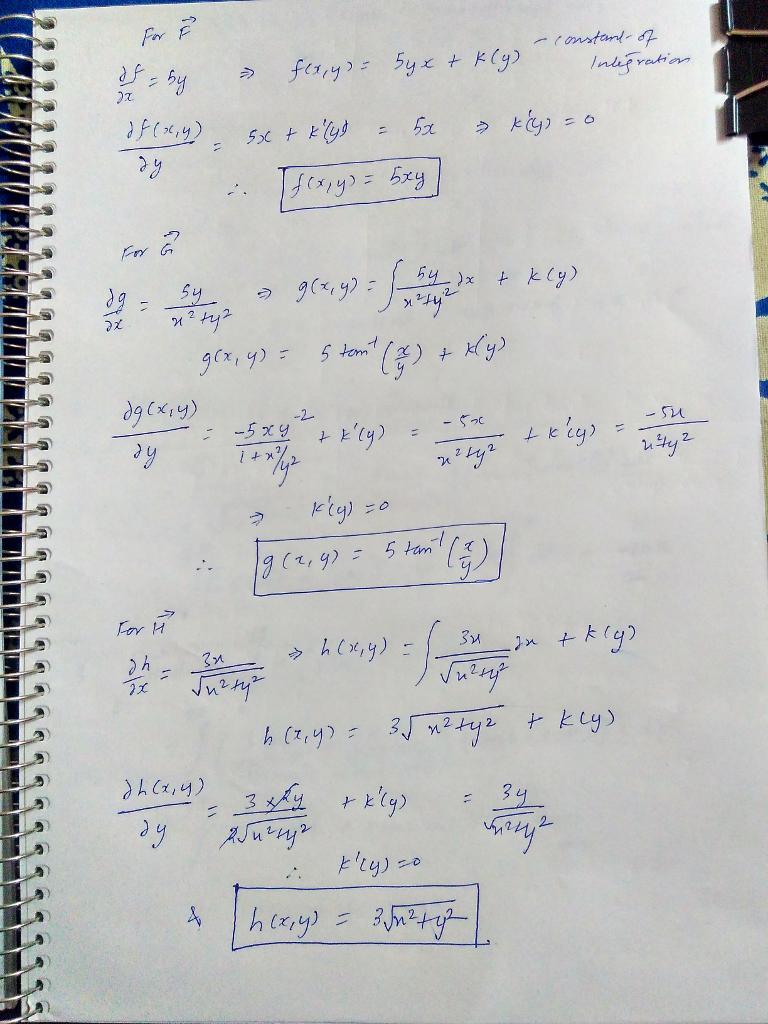 (a) Show that each of the vector fields F⃗ =4yi⃗ +4xj⃗ , G⃗ =3yx2+y2i⃗ +−3xx2+y2j⃗ , and H⃗ =2xx2+y2√i⃗ +2yx2+y2√j⃗ are gradient