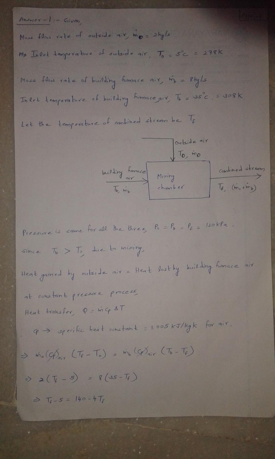 8. When supplying heated air for a building, one often chooses to mix in some fresh outside air with air that has been heated fr