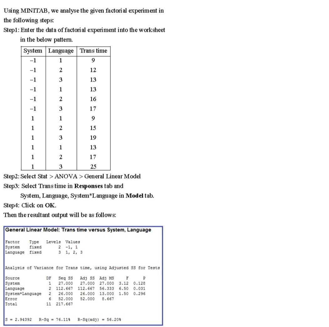 Test for any significant differences due to language translator system (Factor A), type of language (Factor B), and interaction. Use = .05.