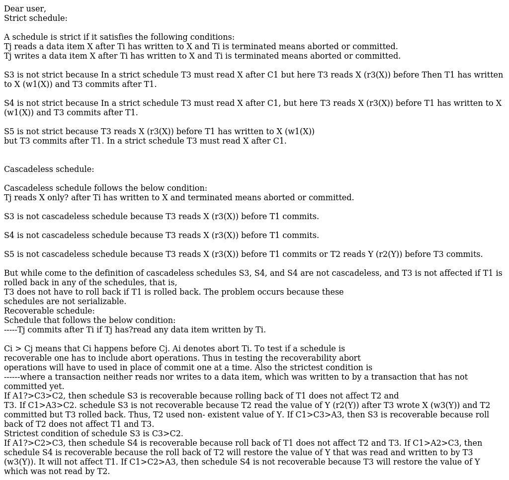 Consider schedules S3, S4, and S5 below. Determine whether each schedule is