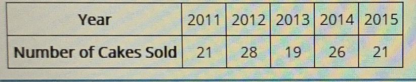 Each year, a school committee sells donated cakes to raise money for a trip. The table shows the number of cakes sold each year