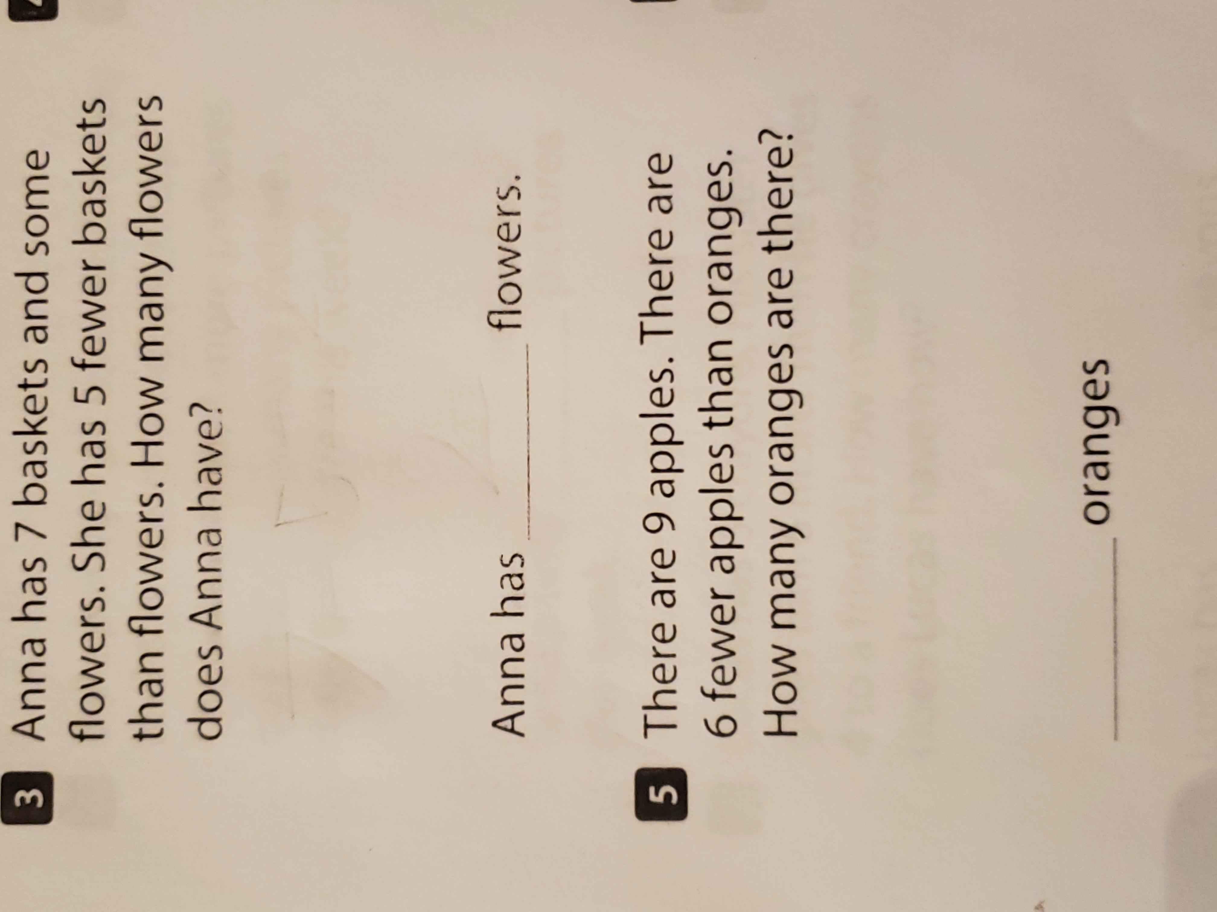 Anna has 7 baskets and some flowers. She has 5 fewer baskets than flowers. How many flowers does anna have?