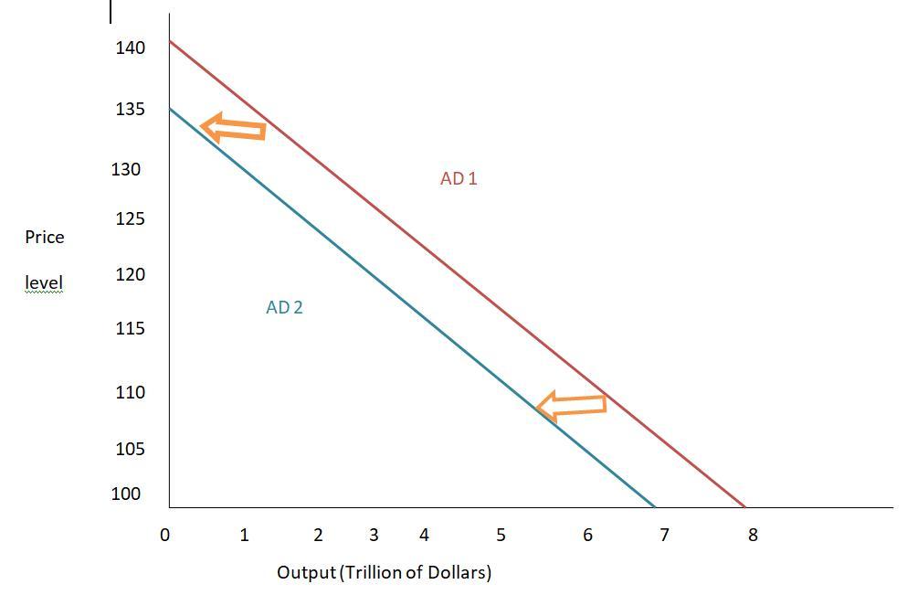 As we can see that the income falls by $1000 billion in the end, so AD shifts to the left by the size of $1 trillion