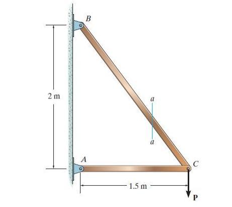 shear stress at section a-a to exceed σ = 160 MPa and τ = 60 MPa , respectively. Member CB has a square cross section of 26 mm on each side.