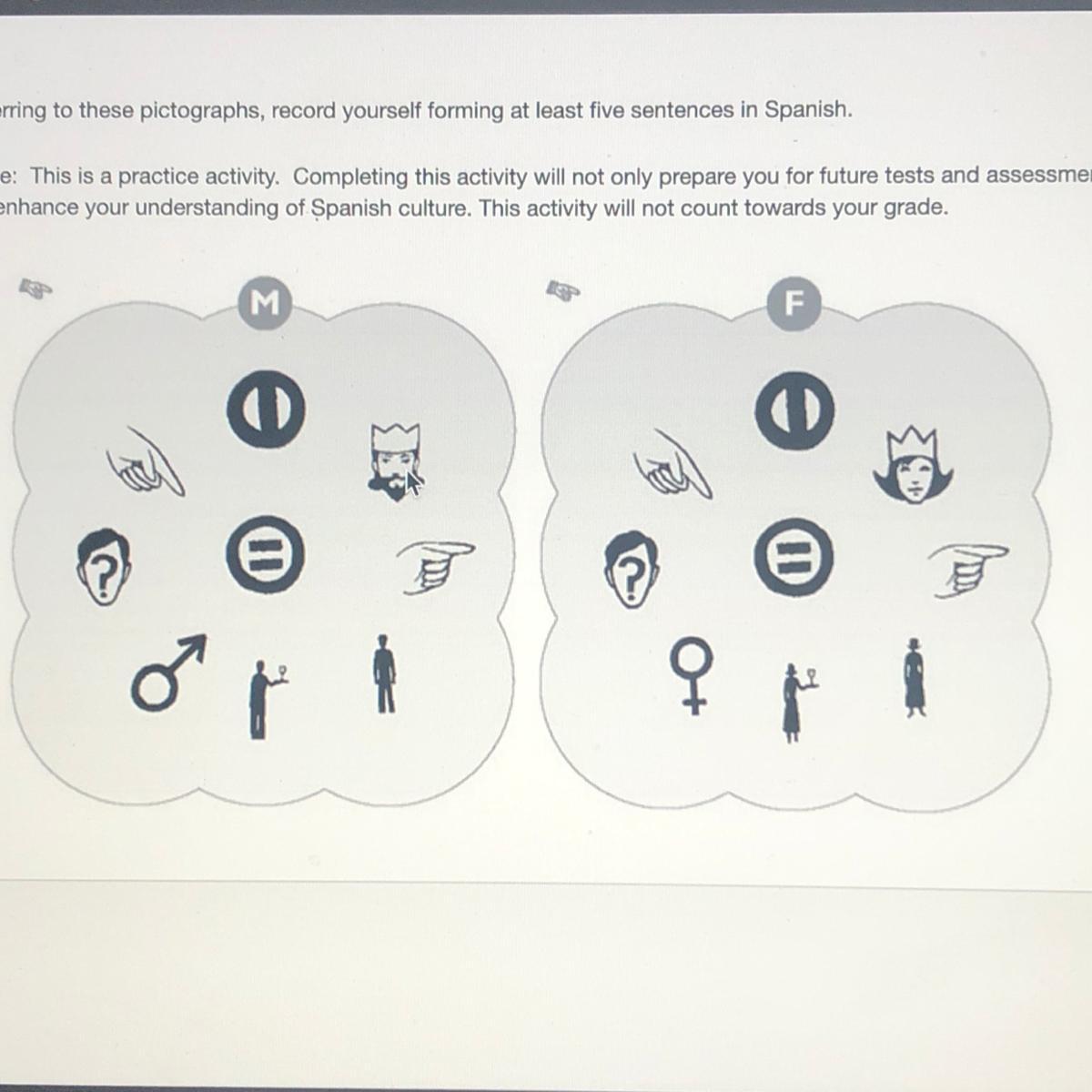 ASAPP!!!!!!!!!!!!!!!!! Referring to these pictographs, record yourself forming at least five sentences in Spanish.