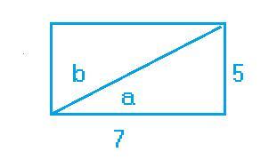 Find the acute angle between the diagonal of rectangle whose sides are 5cm and 7cm