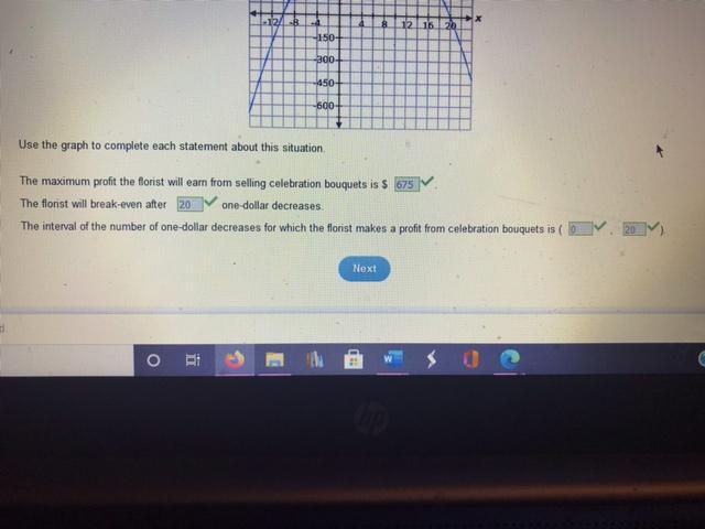 Therefore, the florist will break even after 20 one- dollar decreases