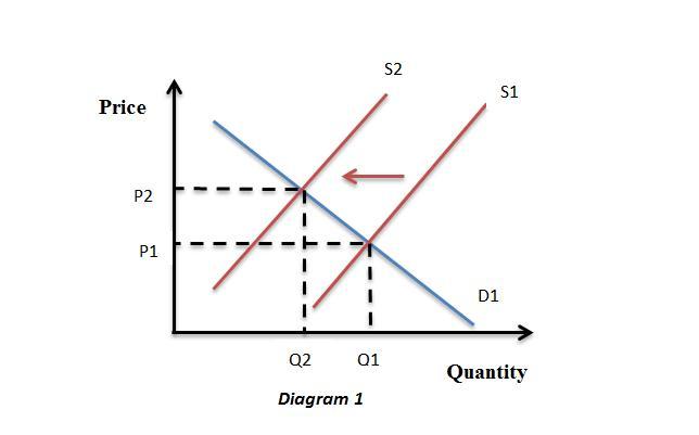 Notice how the supply curve shifted left in the diagram and prices rose.