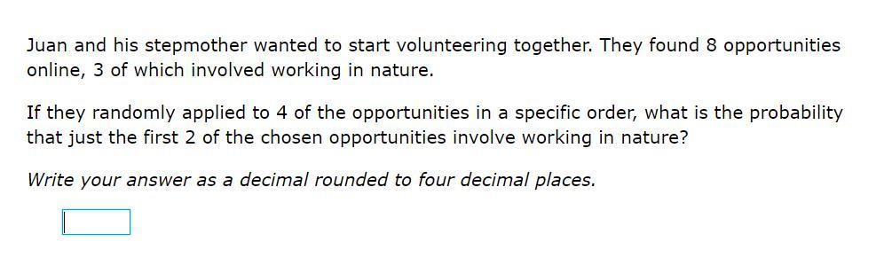 Thus the probability that the first two of 4 opportunities are "working in nature" is ...