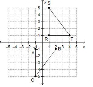 If we reflect the triangle RST over the x-axis, the y-coordinate of each point will have the sign switched, so the point S would be in (1, -5), the point R would be in (1, -1) and the point T would be in (4, -1)