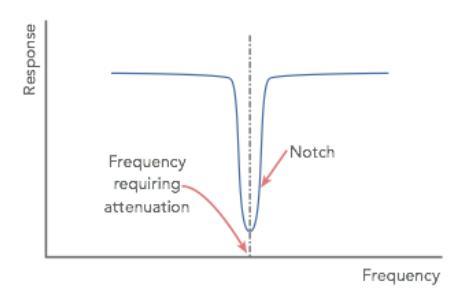 The typical frequency response of a bandstop filter is attached below.