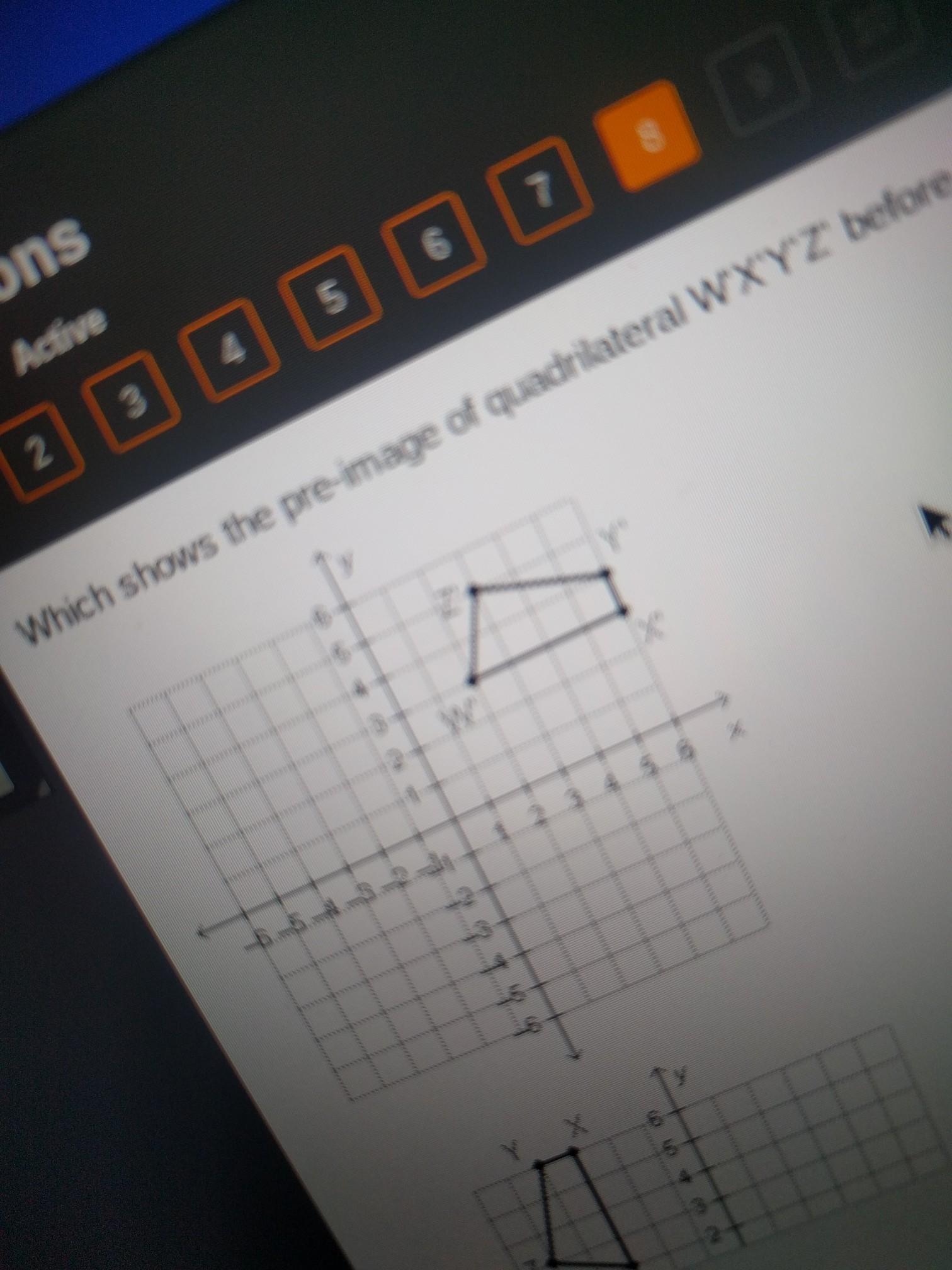 In the figure attached, the quadrilateral W'X'Y'Z' is shown. Its coordinates are W'(2, 3), X'(6, 3), Y'(6, 4) and Z'(3, 5). Transforming these points according to the rule (x,y) → (-x, -y) we can get the pre-image, quadrilateral WXYZ, as follows: