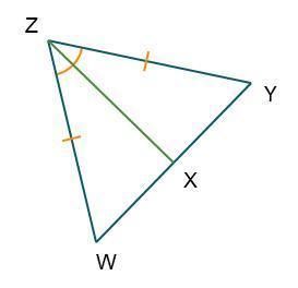 Triangle W Z Y is cut by bisector Z X. The lengths of sides Z W and Z Y are congruent. ZX bisects ∠WZY. If the measure of ∠YXZ i