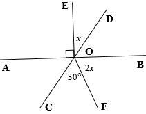 30° + 2x + ∠DOB - (x + ∠DOB) = 180° - 90°
