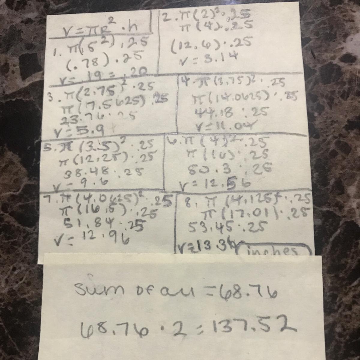 My ideal sphere’s volume was 36.74 and my fountains volume was 137.52. Can someone help with my calculations?