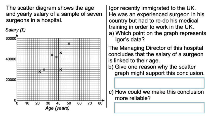 b) Because from the graph apart from the two points, (that of Igor and (34, 44,000)), the salaries of the other points vary proportionately with the age of the Surgeon