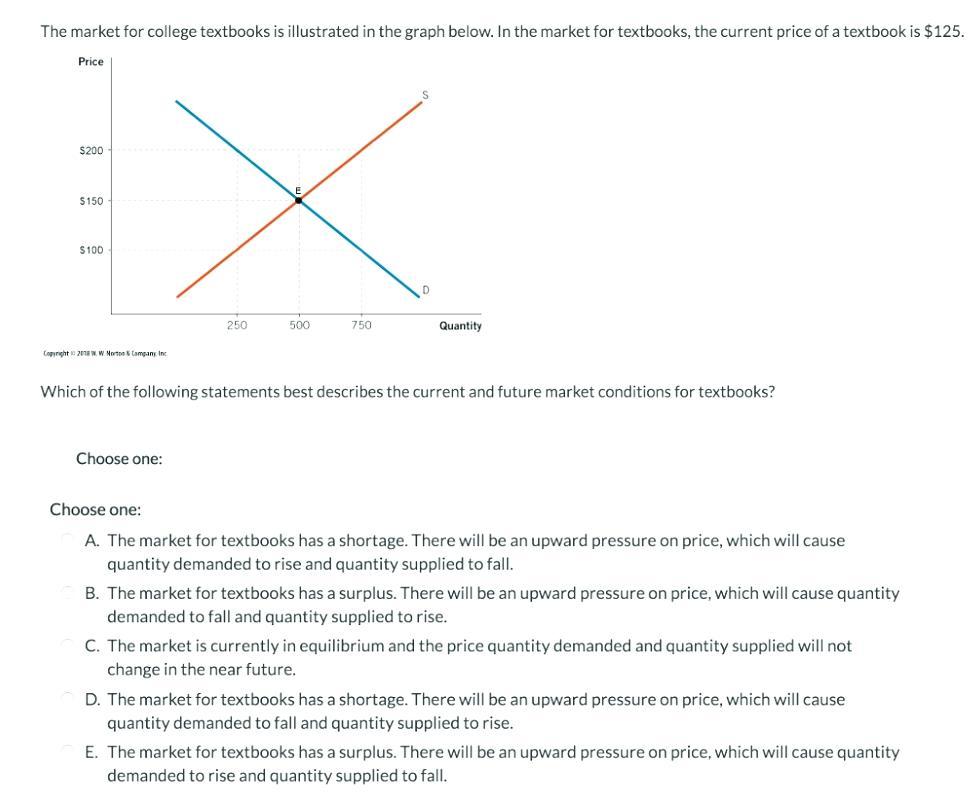 The market for textbooks has a shortage. There will be an upward pressure on price, which will cause quantity demanded to fall and quantity supplied to rise.