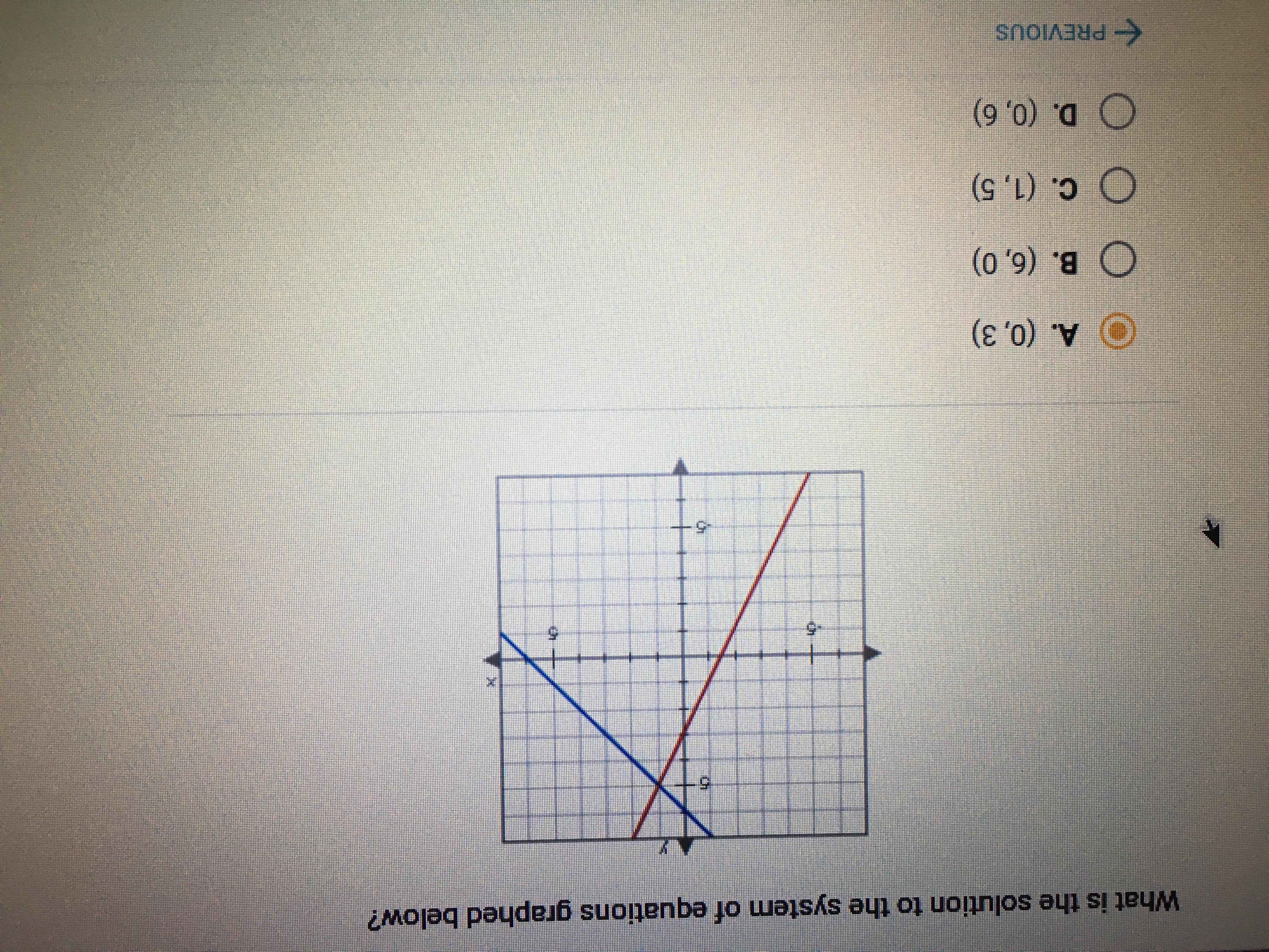 What is the solution to the system of equations graphed below? Please Help (: