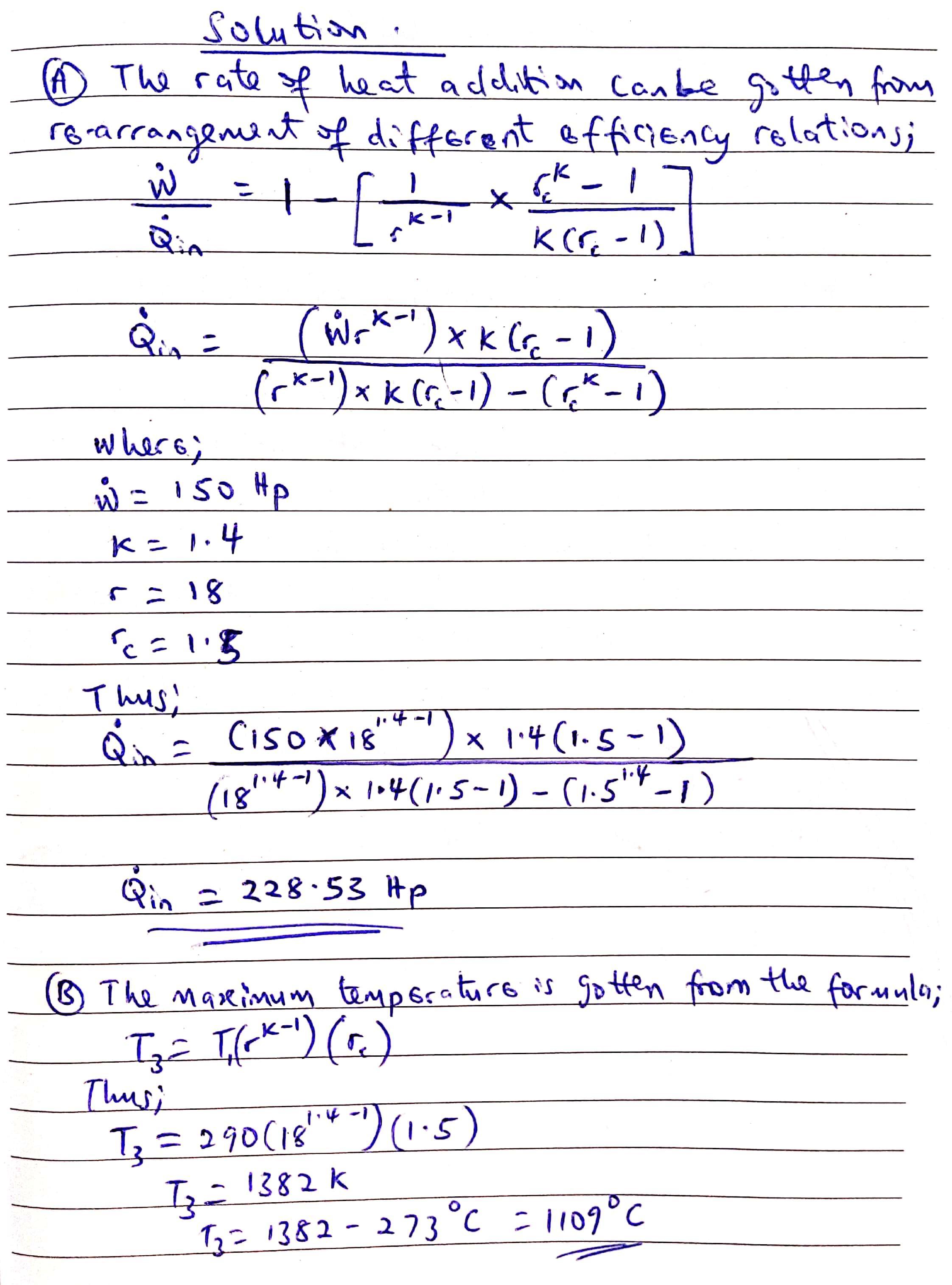A) Rate of heat addition = 228.53 Hp