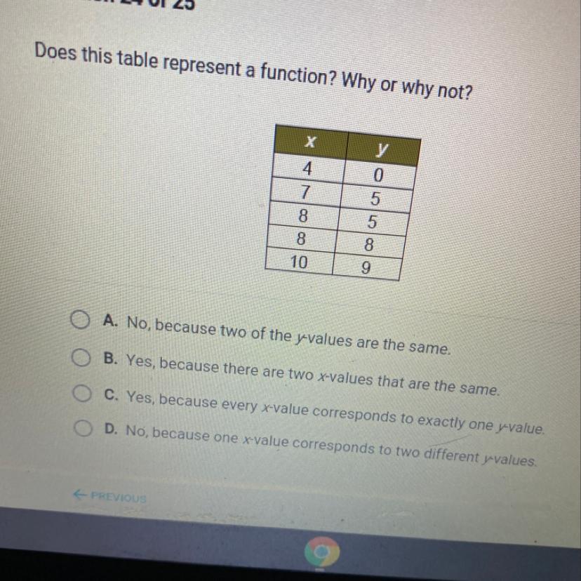 Does this table represent a function? Why or why not?