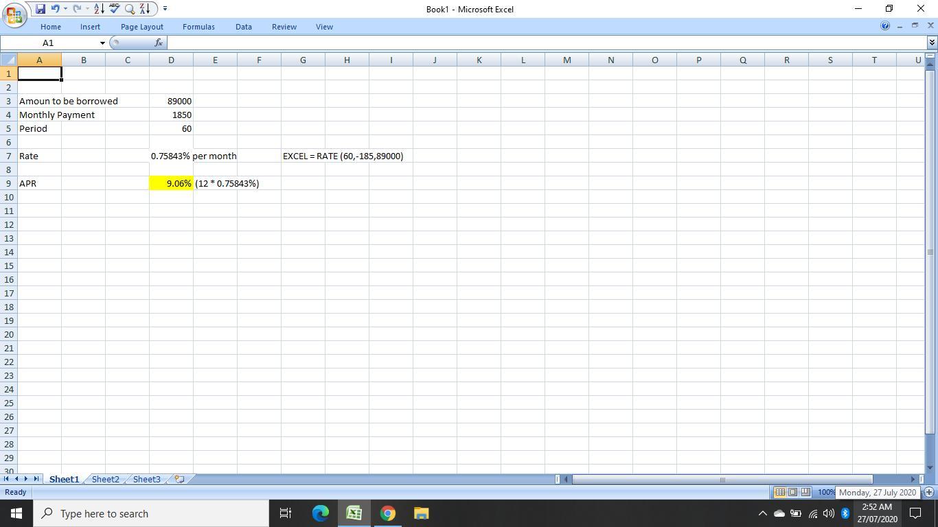 The highest rate that can be afforded on the 60 month APR loan is determined by using the EXCEL Spreadsheet to compute the solution to this question. The spreadsheet screenshot can be seen below for better understanding.