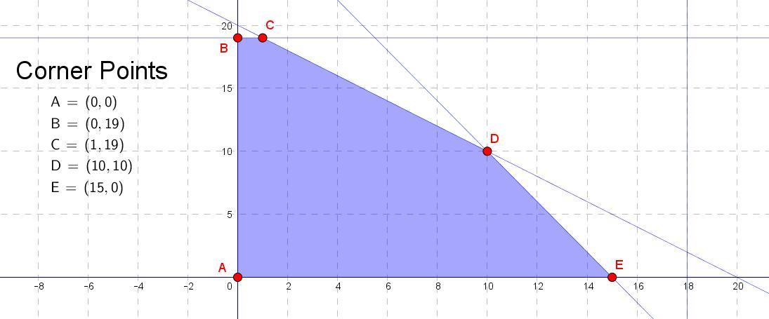 Furthermore, x+y <= 20 represents the idea that only 20 drivers are available. Each bus gets a driver and x+y is the total number of buses in operation. We want x+y to be 20 or smaller.