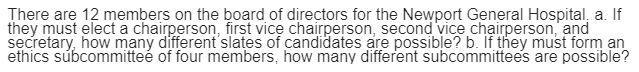 b. number of ways to choose 4 members out of 12 ( order not matters)=