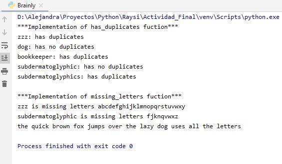 print("\n***Implementation of missing_letters fuction***")